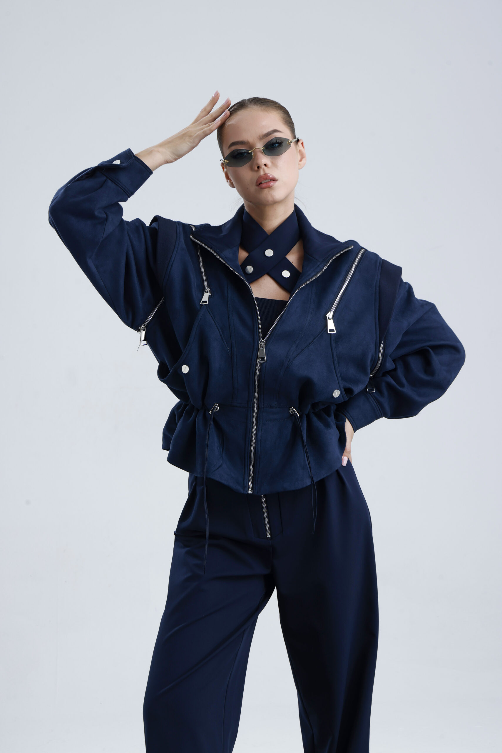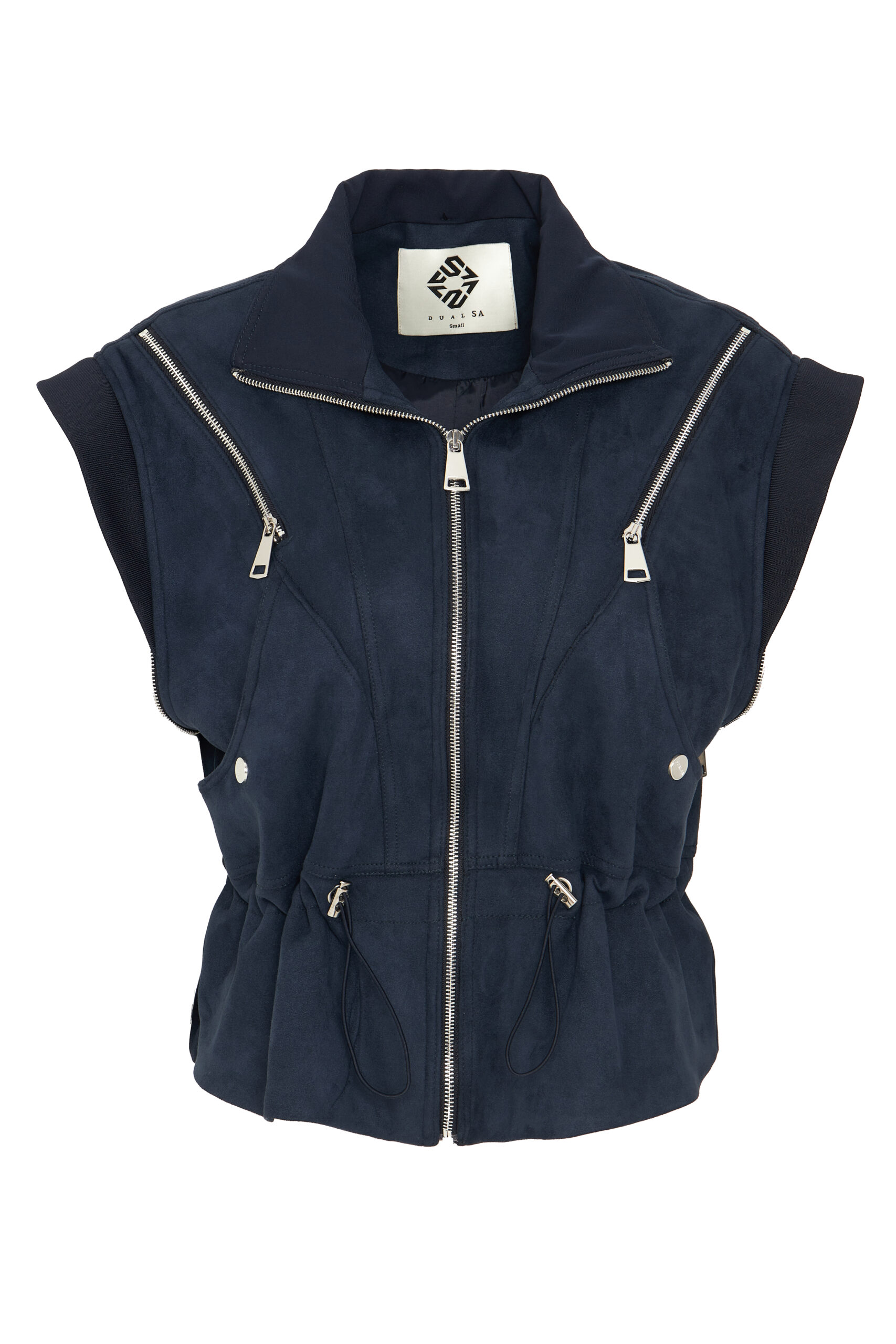 Zip closure, chest zipper, sleeves can be opened with zippers and used as a vest.