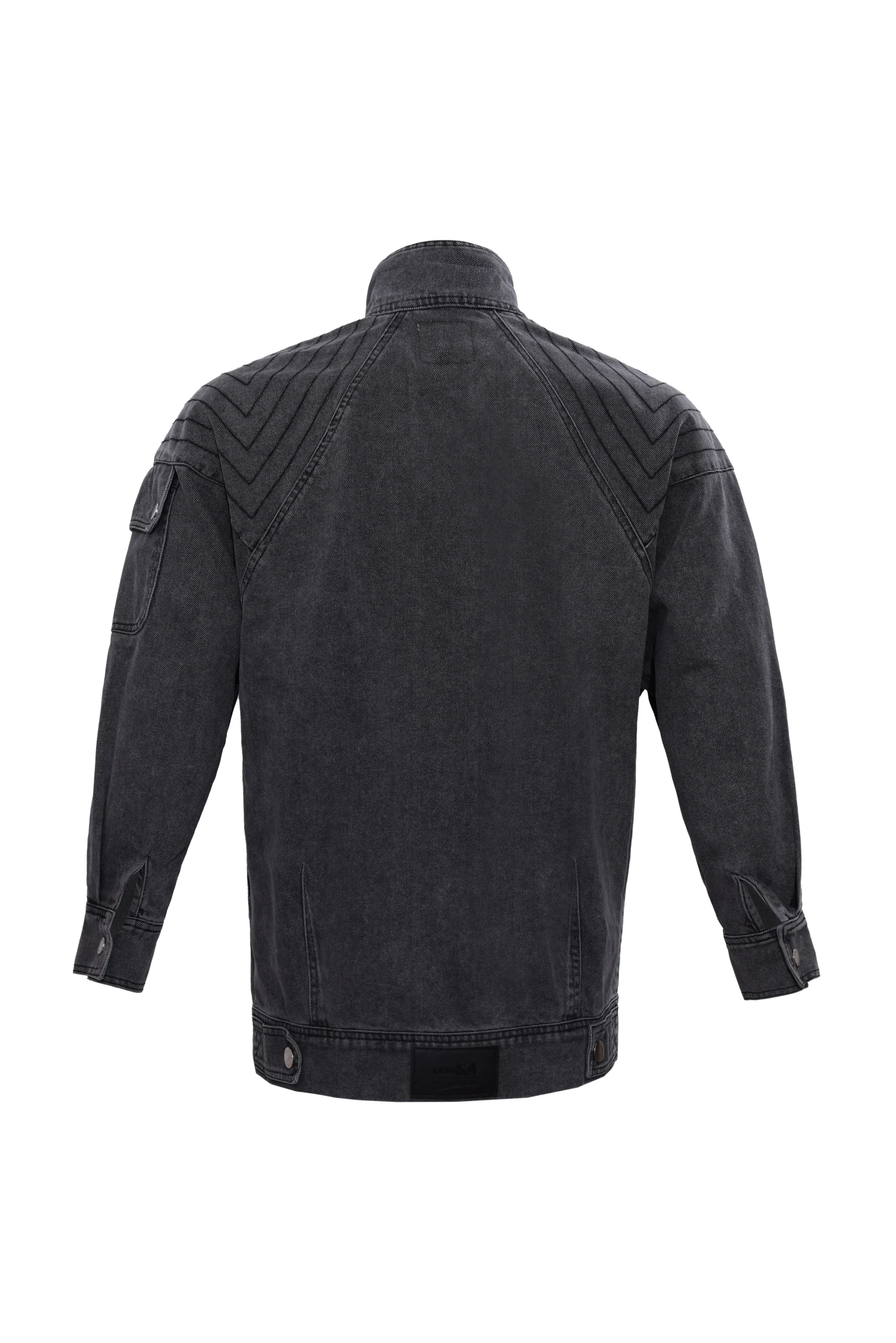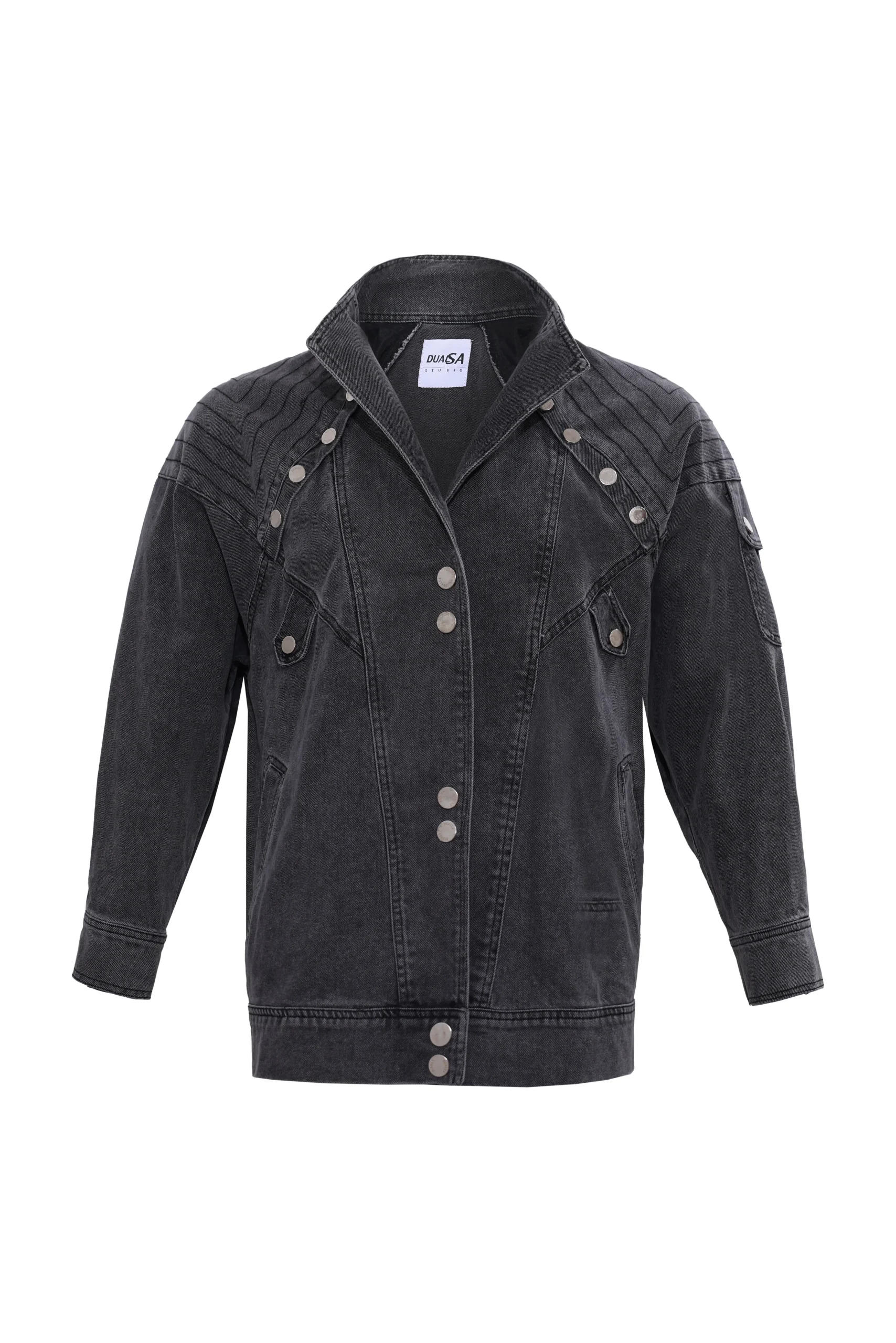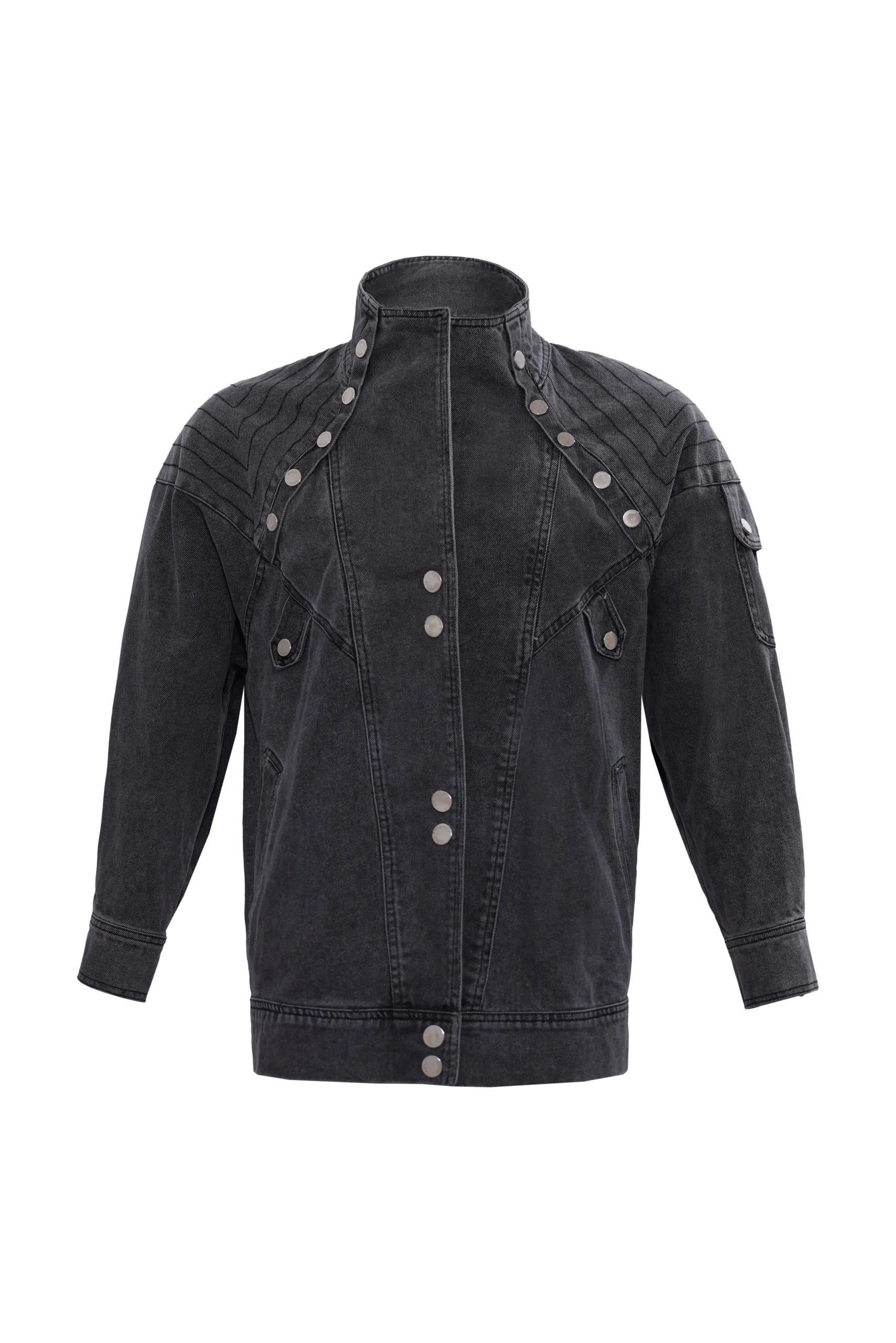 Denim shoulder stitch detail, bust button detail, button closure, single flap side pocket, sleeve flap pocket. Height: 80 cm. Model is wearing size S. Model measurements: Size: 36 | Height: 1.75 cm | Bust: 85 cm | Waist: 62 cm | Hips: 90 cm