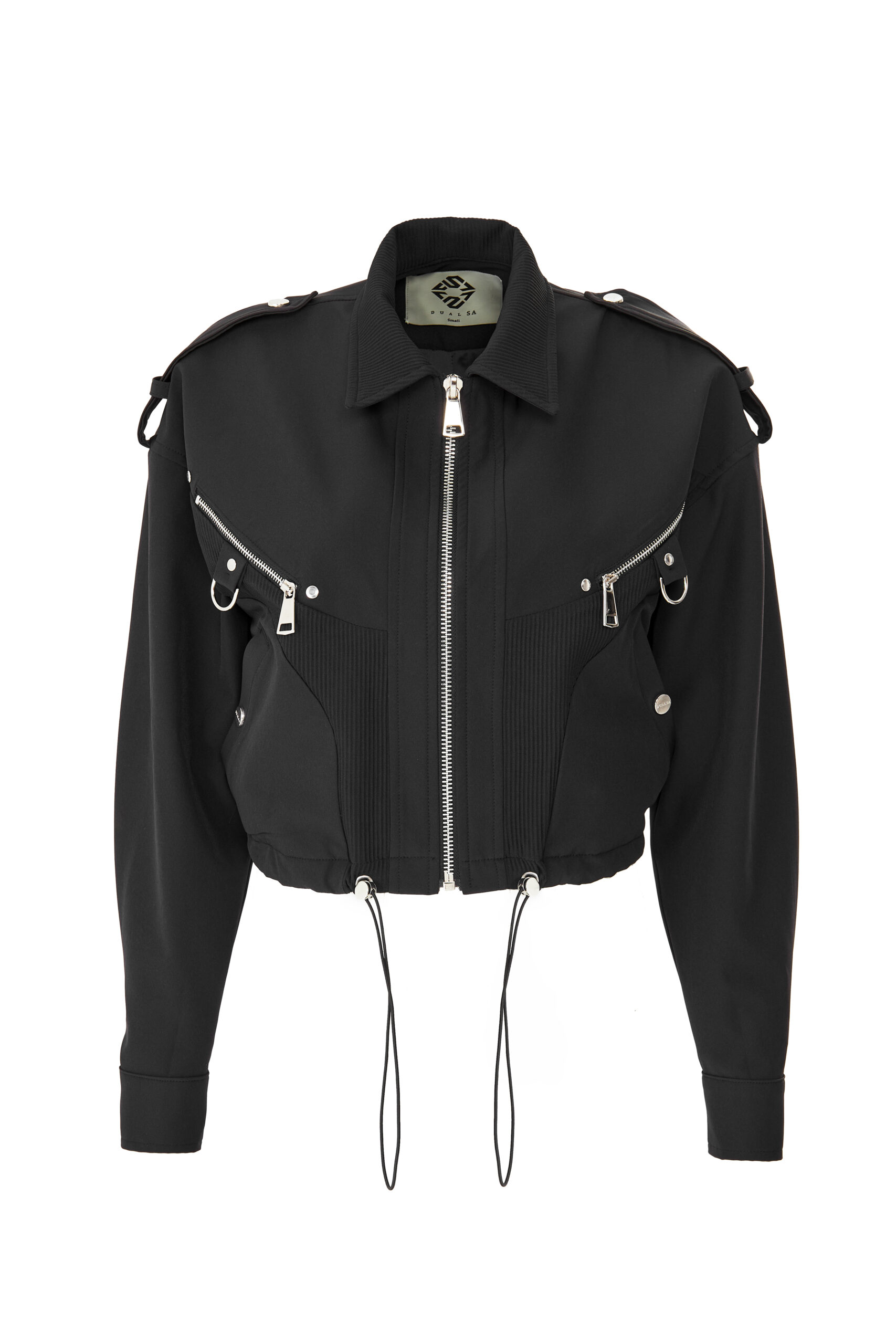 Zipper closure, bust and pocket details