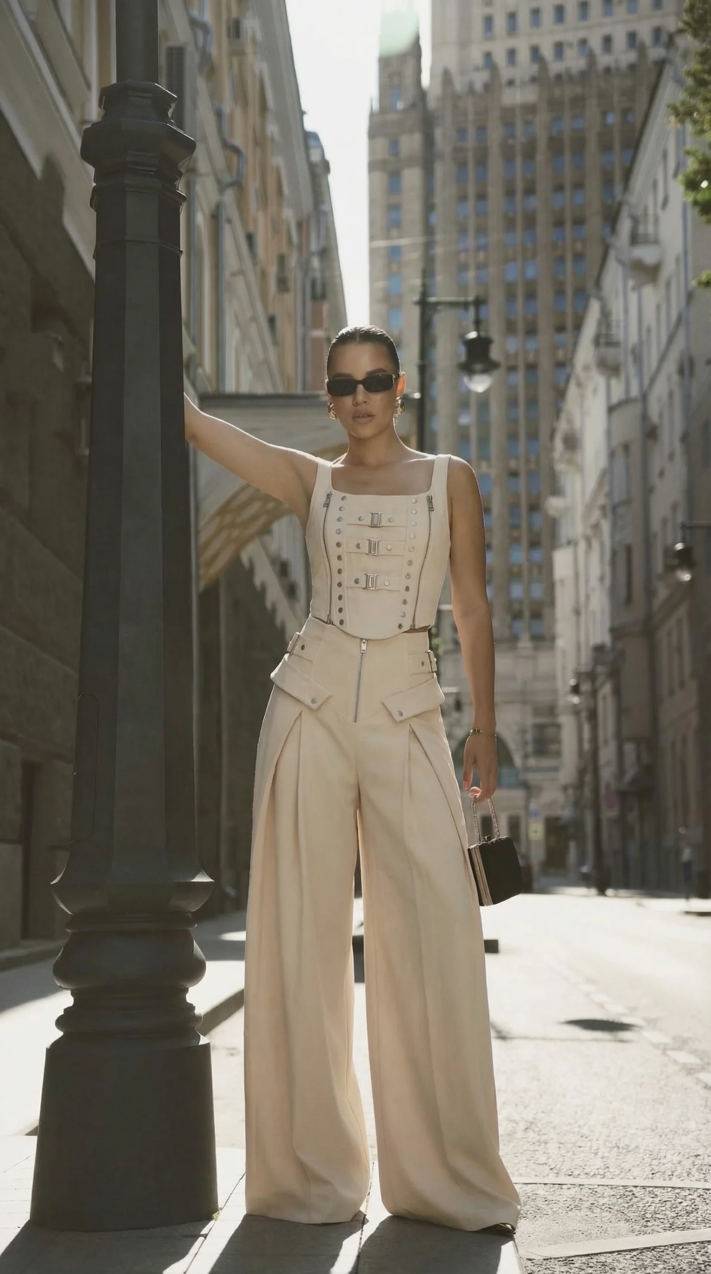 Trousers front waistband zipper ve toka detayli,genis paça