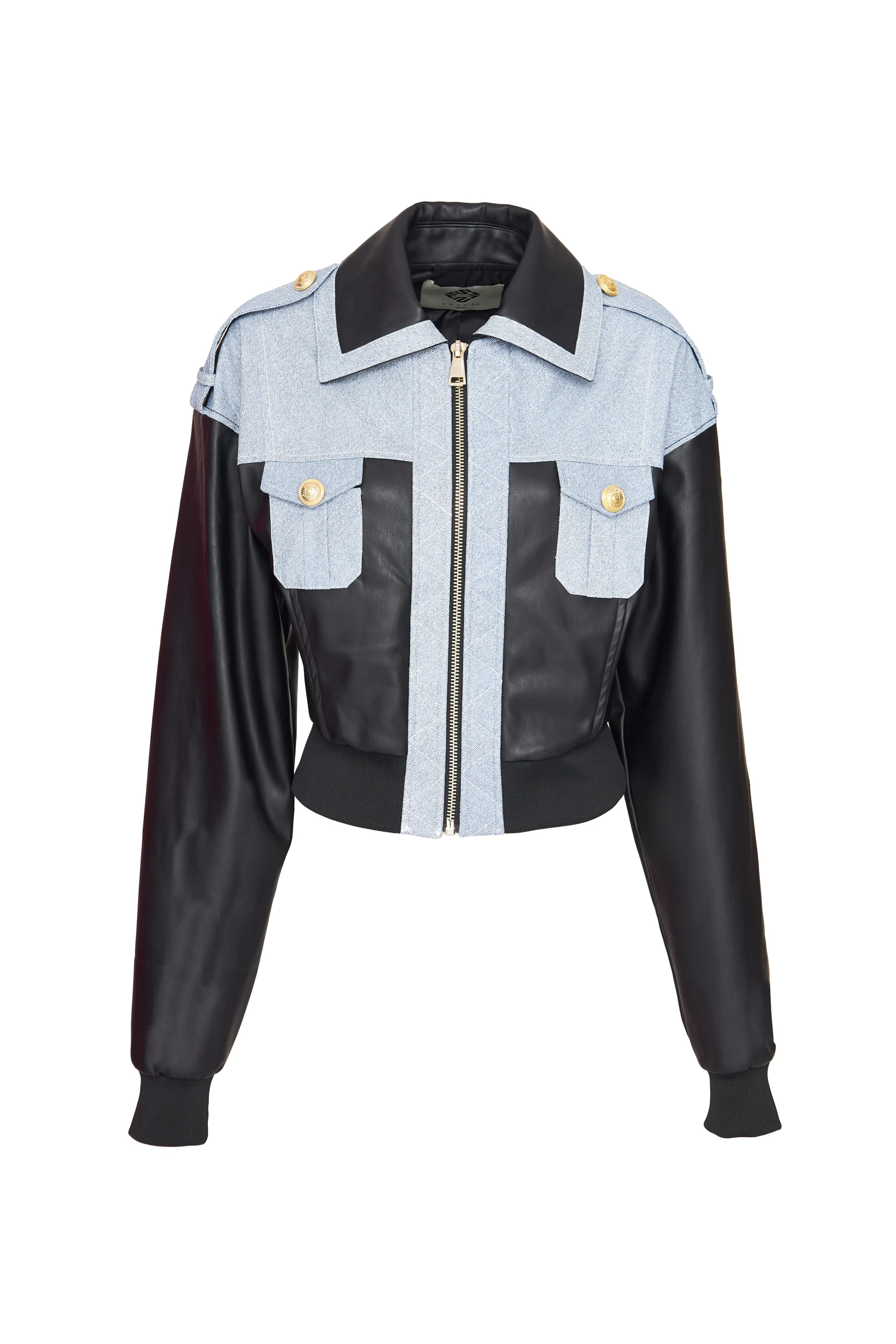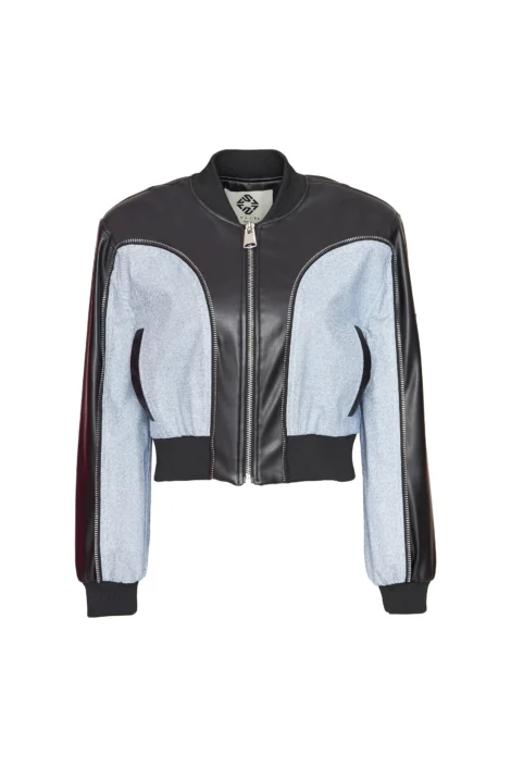 Made from faux leather. Fitted cut. Lined zipper closure. Two-tone bust pocket with flap. Ribbed cuffs. Product height: 50 cm. Model is wearing size S. Model’s measurements: Size: 36 | Height: 1.75 cm | Bust: 85 | Waist: 62 | Hips: 90